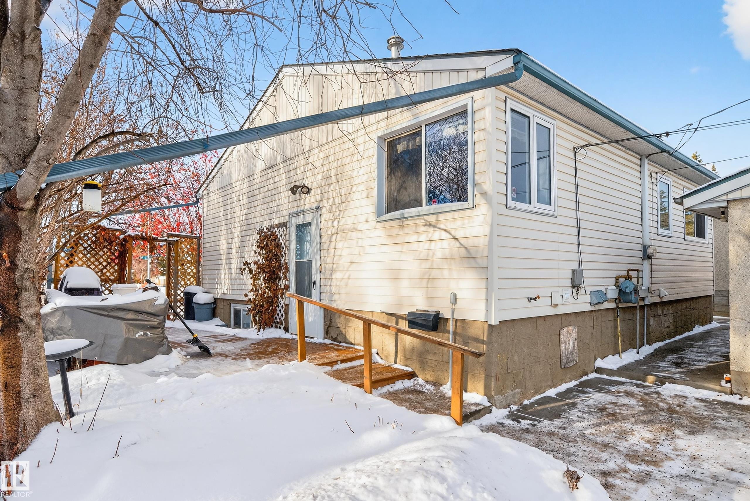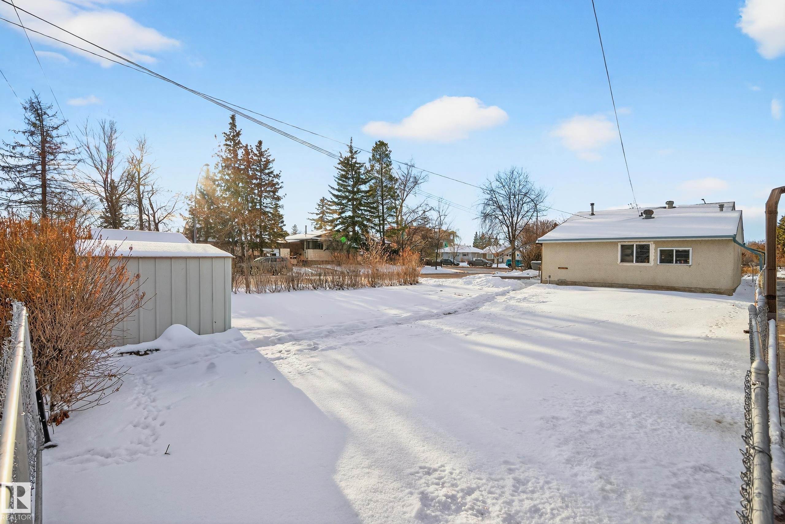 ATTN: DEVELOPERS & first-time home buyers! Lovely 4 bdrm + 2 bath bungalow on HUGE CORNER LOT (55x150 lot on 156 St & 108 Ave is 686 m2) now available. Original owner home. Main floor layout offers spacious living room, kitchen (with built-in dining table+new fridge '24 & new stove '23), hallway pantry, 2 bdrms & full bath (with walk-in shower).  The basement offers large living room, additional 3rd & 4th bedrooms + a laundry /storage rm area & a 3pc bath. Side entry door could be a SEPARATE ENTRANCE to the...