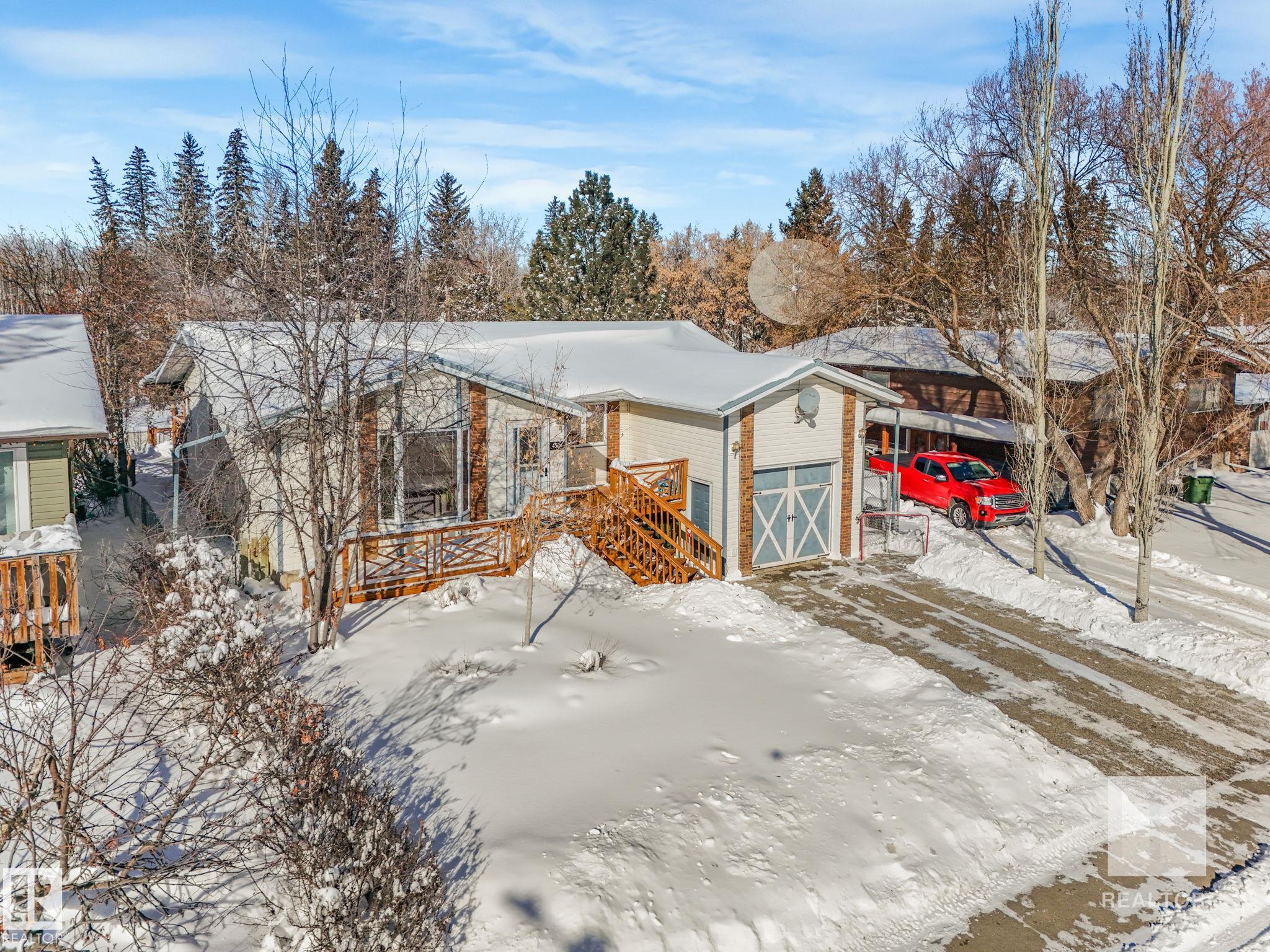 The perfect blend of peaceful country living and convenience in this charming 4-bed, 2.5-bath home in Onoway, AB. On a spacious lot backing onto serene Elks Park. Enjoy unmatched privacy, lush green views, and an acreage-like feel with minimal yard work. At the edge of town: true tranquility yet a short walk to shops, services & amenities. In the scenic Sturgeon River valley, welcoming Onoway ~1,000 population, "Hub of the Highways" is just 40 min NW of Edmonton via Hwy 43. Ideal for commuters seeking spa...